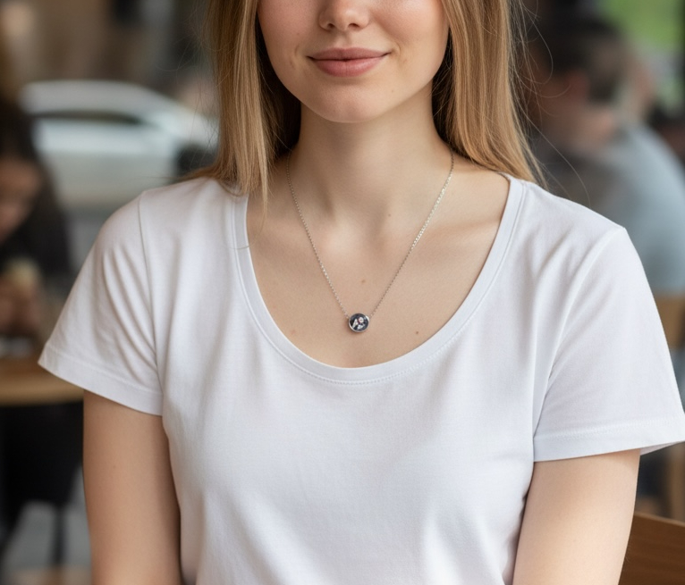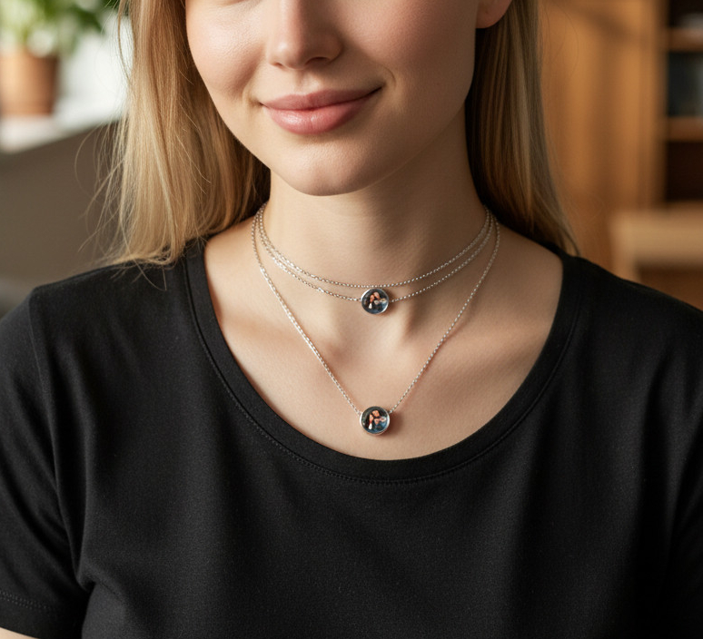 Die Halskette hat eine Länge von 65 cm und ist für jede gewünschte Länge verstellbar. Sie können sie als Choker, unterhalb des Halses oder in voller Länge von 65 cm tragen. Ideal für stilbewusste Frauen, die ihre Erinnerungen an ihren Freund, ihre Eltern, Haustiere, Schwester, Bruder oder Großeltern bei sich tragen möchten. Die personalisierte Foto-Halskette eignet sich auch ideal als Geschenk für Frauen, beispielsweise zum Valentinstag, Geburtstag, Weihnachten, Jahrestag oder zu anderen Anlässen.