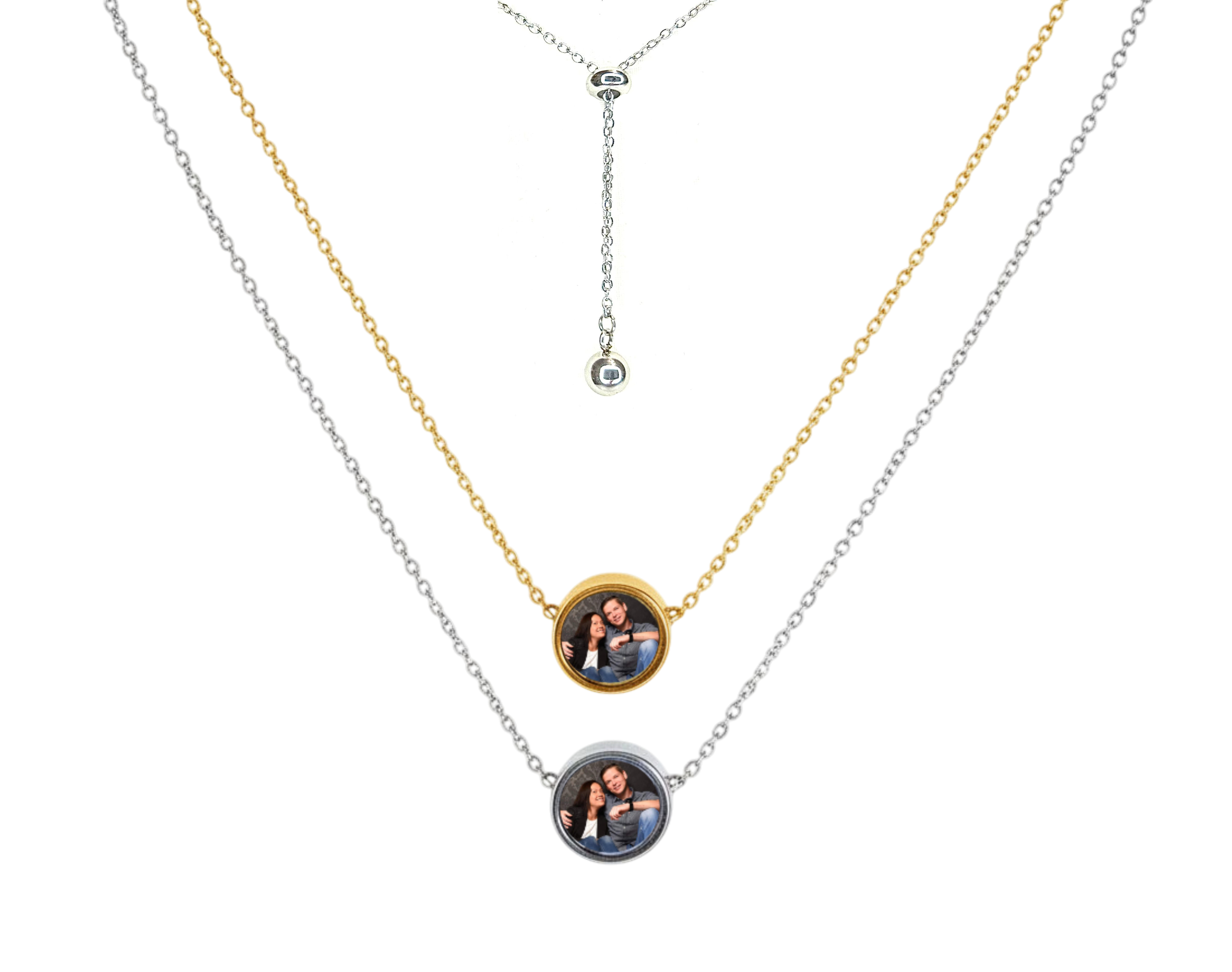 Verstellbare personalisierte Foto-Halskette, runder Foto-Anhänger 10 mm